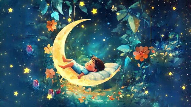 Little boy sleep in the moon lullaby