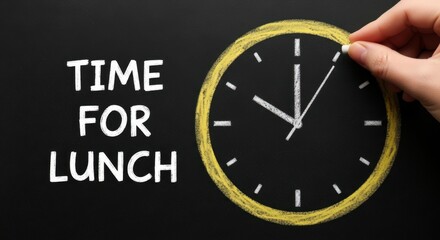 Hand adjusts clock hands indicating it is time for lunch break