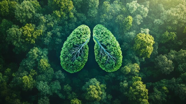 concept image, Showing dense forest trees in the shape of a lung. In the lush and pristine forest.