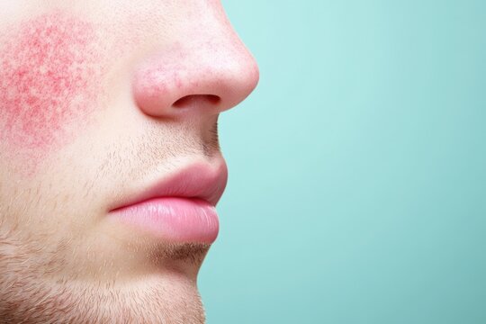 A case of cutaneous sarcoidosis on the face of a man, close up view