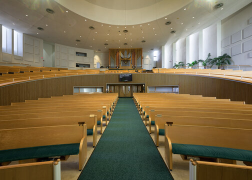 Interior of the modern St Peter's Lutheran Church in Columbus, Indiana