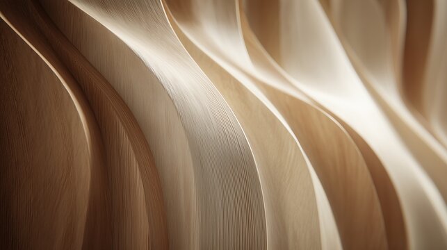 Close-up of smooth, wavy wooden surface with light reflections. The wood grain shows natural patterns and textures, creating an organic feel.