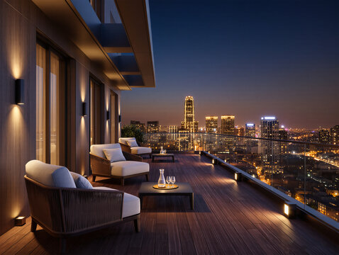 Modern villa rooftop infinity pool overlooking Dubai skyline