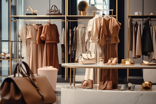 Interior women's clothing store, partition walls, White walls and Molteni color, vintage modernism,interior store design ideas,ai generate