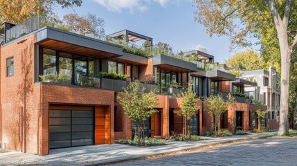 Luxury townhouses promotion in urban landscape background