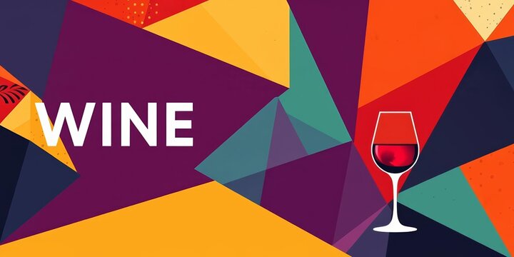 Bold geometric wine poster design; vibrant abstract patterns, modern typography, ample negative space, marketing, elegant