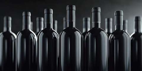 Elegant black wine bottles arranged in a stylish modern setting showcasing luxury and sophistication