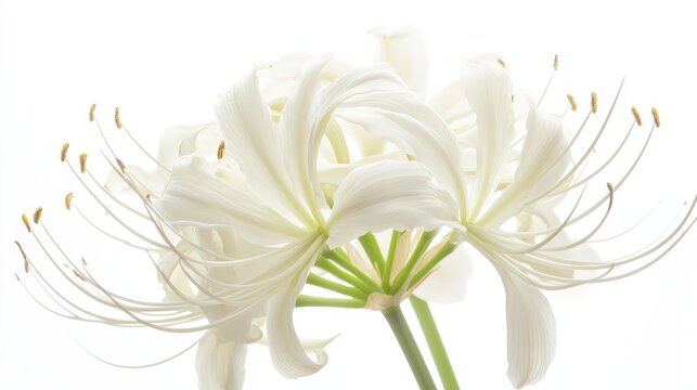 Striking Cluster of Red and White Lycoris Radiata Flowers on White Background