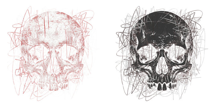Multicolored skull with vibrant lighting and smoky background — surreal digital art blending macabre and neon fantasy.