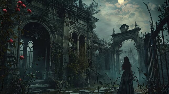 Broken cracked adult doll mannequin in style of dark baroque gothic