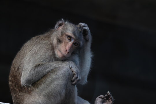Silhouettes monkey icon on white background, vector illustration.