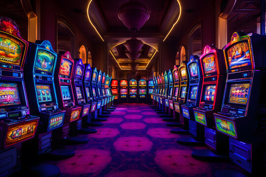 A colorful slot machine displaying fruit symbols and three sevens, representing gambling fun.