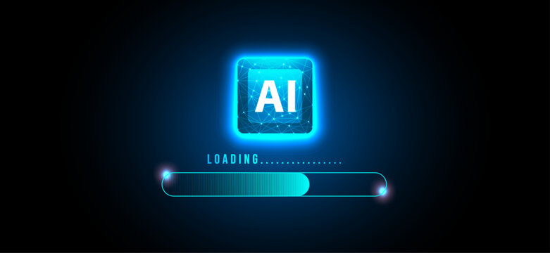 AI Loading Progress – Futuristic Neon Tech Interface Illustration for themes related to artificial intelligence, machine learning, automation, digital technology, software development, futuristic UI/U