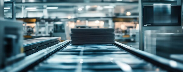 Close-up conveyor belt factory is made up multiple of newspaper printing