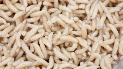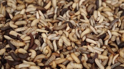 Close up of Black soldier fly (BSF) larvae or maggot, Hermetia Illucens  insect farms for fish and poultry feed