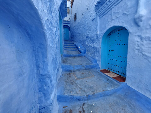 Streets and houses of Chefchaouen, Morocco painted in blue