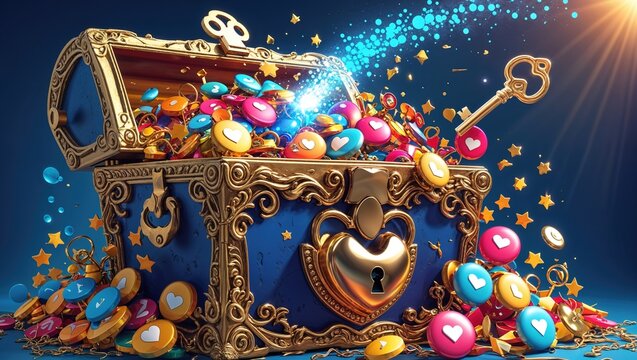 majestic golden trophy against a pastel blue background. A magical explosion of sparkling golden stars is emanating from the trophy,