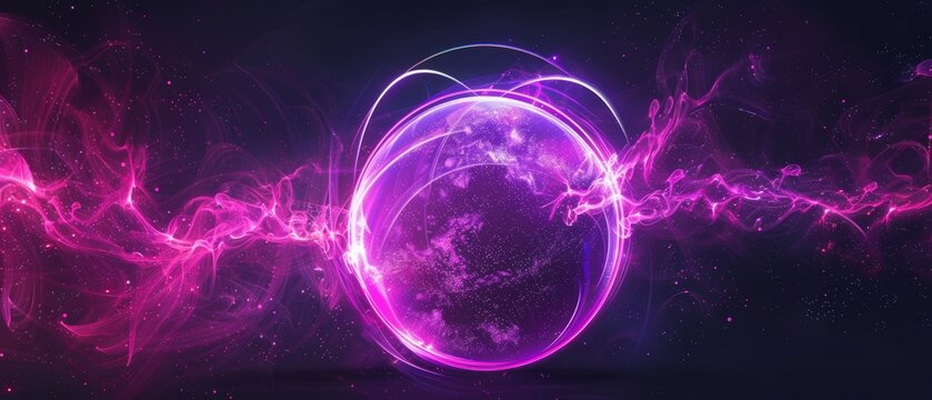 Vibrant, futuristic boots with sparkling neon blue and purple accents, fluffy pink fur, and glowing soles, reflecting magically on a wet surface.