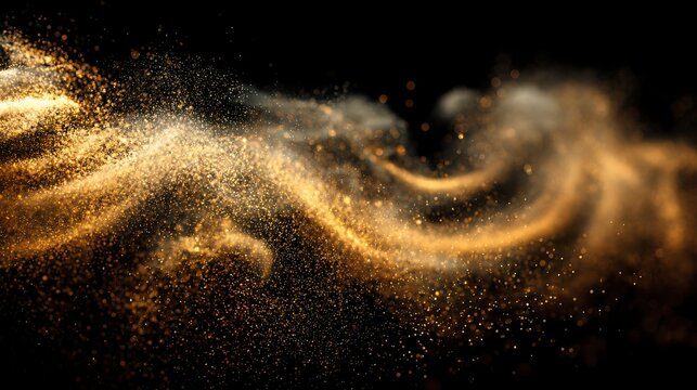 Golden dust swirls magically in the air against a black background, creating a festive and enchanting atmosphere