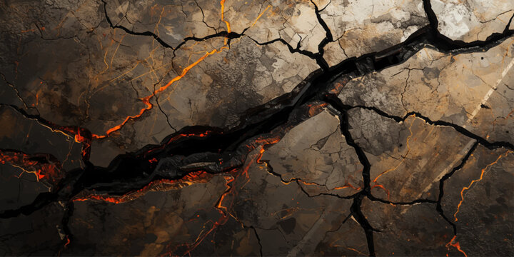 Detailed view of an active lava flow, hot magma emerges from a crack in the earth, the glowing lava appears in strong yellows and reds - Location: Hawaii, Big Island, volcano "Kilauea"