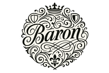 Baron Flourish Lettering. Flourish Lettering ? "Baron" in classic ornamental flourish lettering, medium-thick swashes resembling elegant crests and medieval