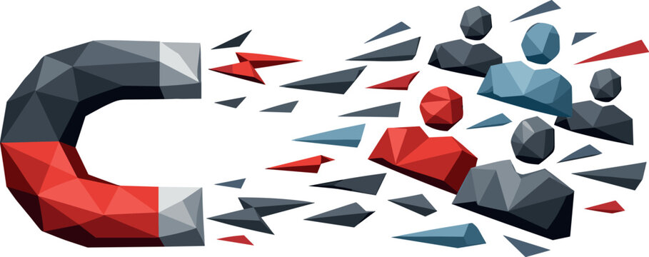 Business Magnet Concept. Low-poly vector illustration focused on a business attraction magnet concept, polygonal geometric style