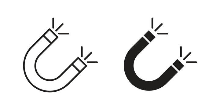Two horseshoe magnet icons, one line style and one solid, isolated on white. Perfect for marketing or technology.