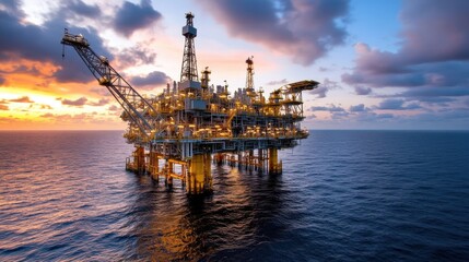 oil rig sunset, an impressive sunset view of an offshore oil rig, highlighting the industrys magnitude and power alongside silhouetted equipment