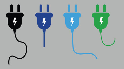 electric socket icon set. Electric Plug and Socket IconElectrical cord or cable. Electric power. Set of electric plug vector icons onTransparent background. Electricity and Energy supply socket sign
