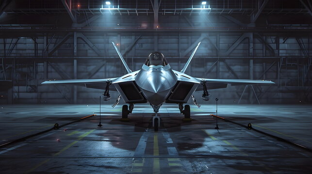 Advanced Fighter Jet Hangar Illuminated Night Stealth Technology