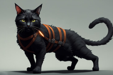 Imposing black cat. Beautiful cat with majestic look. Generative AI.