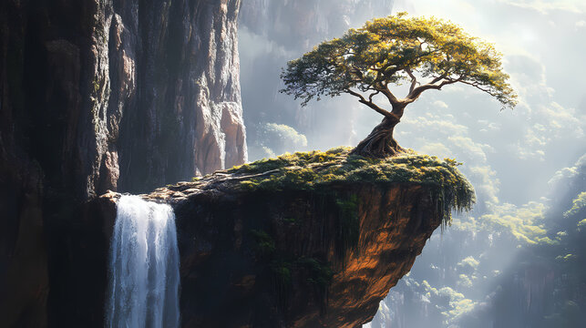 majestic cliffside waterfall overlooking a forested valley nature's wonder