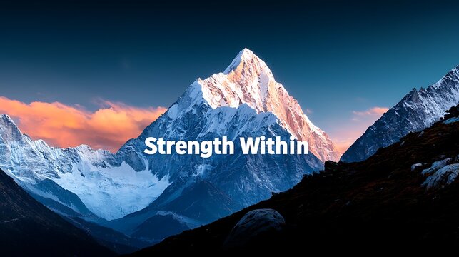 Motivational mountain backdrop with inspiring text