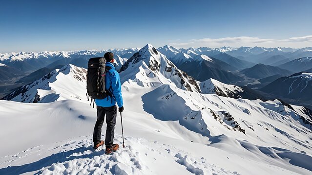 White snowy mountains under a vibrant blue sky symbolizing travel lifestyle resilience and challenges ideal for adventurous journeys or serene getaways capturing nature's majestic and inspiring essenc