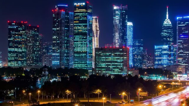Tall Buildings Glimmer Majestically Against the Night Sky