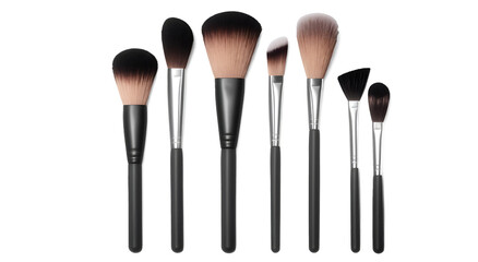 Professional makeup brushes set isolated on transparent background. Generative AI