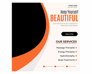 Spa, beauty, massage social media post template design. Modern banner template with place for the photo. Suitable for social media, flyers, banners, and websites.