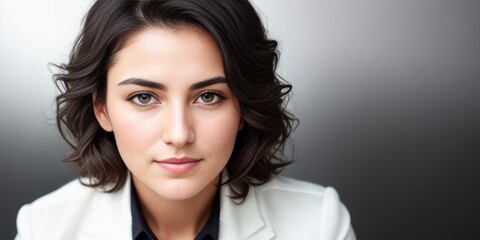 Close-up portrait of her she nice attractive lovely charming curious creative pensive cheerful cheery dark wavy-haired girl looking aside isolated on light white pastel color background. Generative AI