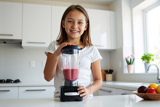 Young girl making a smoothie