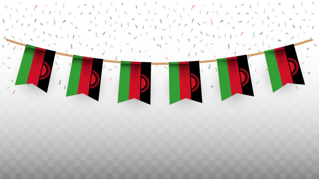 Vector illustration of the country flag of Malawi with confetti on transparent background. hanging flag for Independence Day celebration