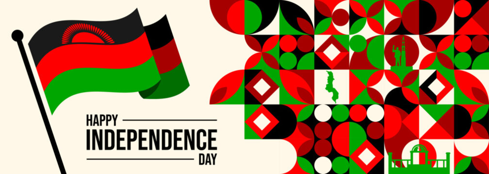 Happy Independence day of Malawi, Waving flag of Malawi for independence day greeting card, Banner or poster of Malawi independence day celebration