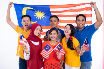 malaysia people holding flag celebrating independence day together