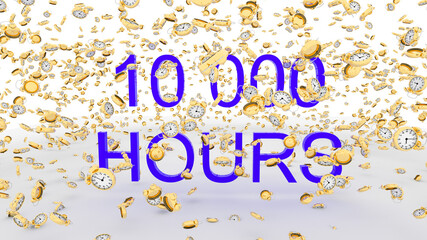 10000 hours concept on white backgound. Number of hours to become a professional. Isolated on white background. 3d render