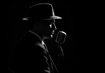 Vintage Style Man Singing into a Microphone in Profile. Generative Ai