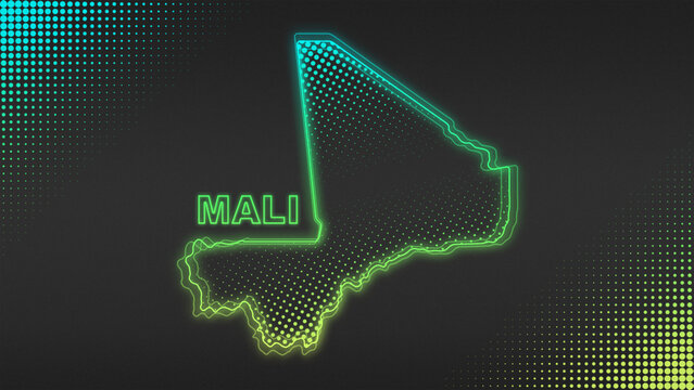 Neon Blue-Yellow Mali Map Outline Futuristic Glow Halftone Illustration