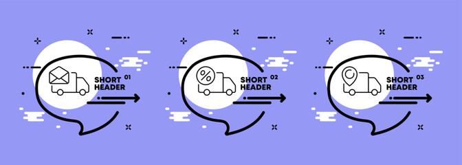 Delivery line icon. Clock truck. Free and fast delivery of goods. Post. Minivan that delivers the order. Shopping concept. Infographic timeline with icons and 3 steps. Vector line icon for Business