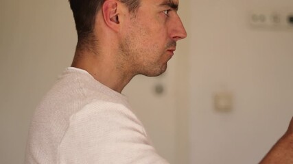 Relaxed man enjoying peaceful home ambiance. Home insurance concept