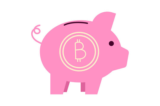 Pink piggy bank with Bitcoin symbol vector illustration. Savings, cryptocurrency, digital finance, investment, money management. Clean, modern graphic ideal for financial apps, fintech content PNG