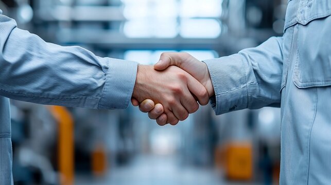 Managers shaking hands in warehouse: teamwork and collaboration in logistics