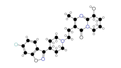 paliperidone molecule, structural chemical formula, ball-and-stick model, isolated image atypical antipsychotic